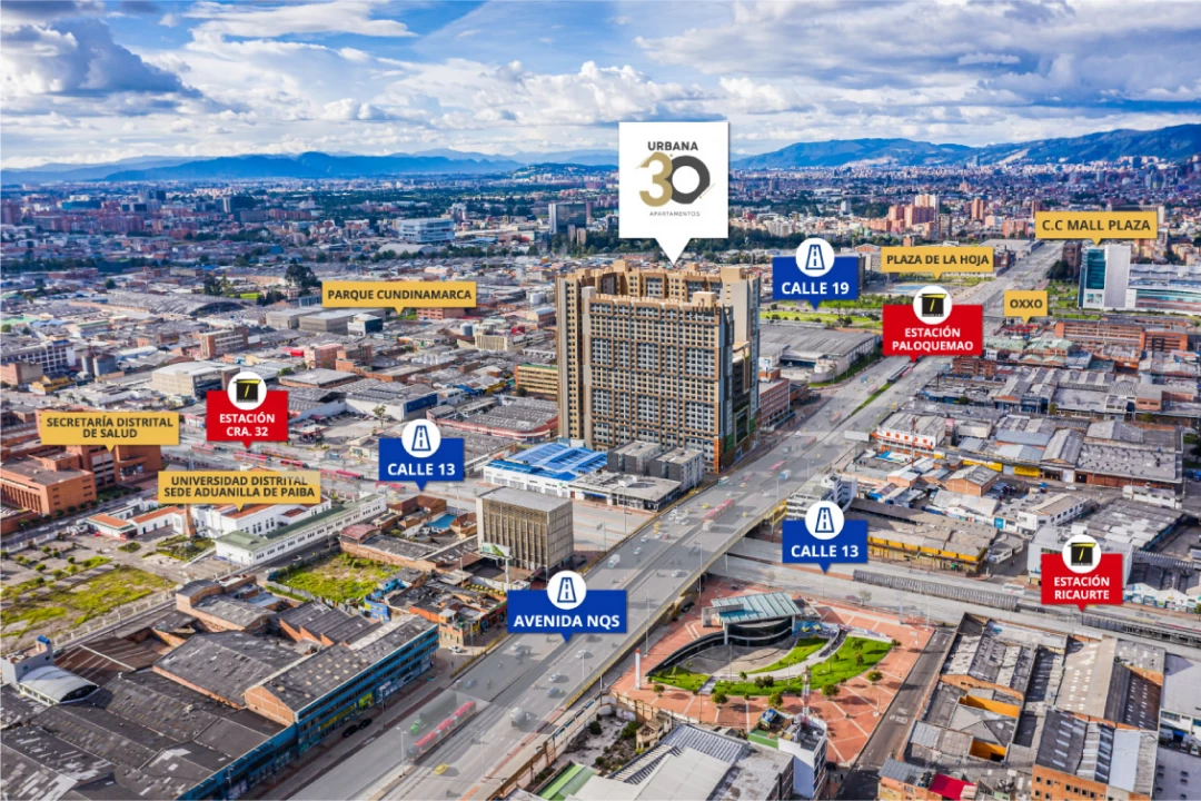 Urbana 30: Tu espacio ideal en el centro de BogotáEn una zona de renovación urbana, Urbana 30 redefine el estilo de vida con tres torres de 25 pisos y excelente conectividad. Ubicado cerca de la Av. Carrera 30, Calle 13, Calle 19 y a solo 200 metros del Transmilenio, este proyecto te conecta con lo mejor de la ciudad.Zonas comunes que lo tienen todo:🏊 Piscina, sauna, turco y zona de hidratación para tu bienestar.🏋 Gimnasio de 3 pisos y muro de escalar para mantenerte activo.☕ Terraza café, coworking y sala de juntas para trabajar y relajarte.🛍 Mini market y depósitos comunales para mayor comodidad.🎉 Salón social, salón de eventos y salas premium para tus reuniones.🧒 Zona de juegos para los más pequeños y áreas de espera acogedoras.Urbana 30 es más que un hogar, es una experiencia de vida. Aprovecha nuestro amplio plazo para la cuota inicial y vive la ciudad al máximo. 🌟